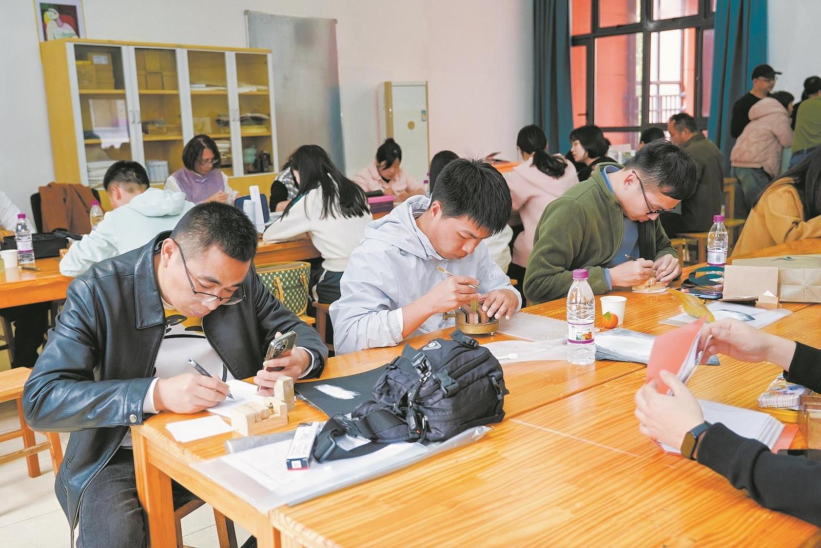 不久前,2026年全市中小学美育教师(风景写生、篆刻)专项研训活动在泉州一中举办,全市各县(市、区)美育骨干教师齐聚参训。活动特邀天津美术学院教授袁文彬,福建省美术家协会副主席郭宁、张剑,中国书法家协会会员林飞煌、郑荣嘉等省内外知名艺术家指导,以“理论讲授+现场实操+作品点评”模式,紧扣教学实际,提升教师专业能力。古城街巷中,教师们捕捉闽南建筑之美、人文之韵,开展现场写生,专家巡讲指导;篆刻工坊里,教师们执刀刻石,专家对作品逐一评析,点拨提升。研训的优秀作品被泉州市教育系统书画院收录,专家创作的作品也被赠予学校收藏,成为泉州美育教育的珍贵成果。