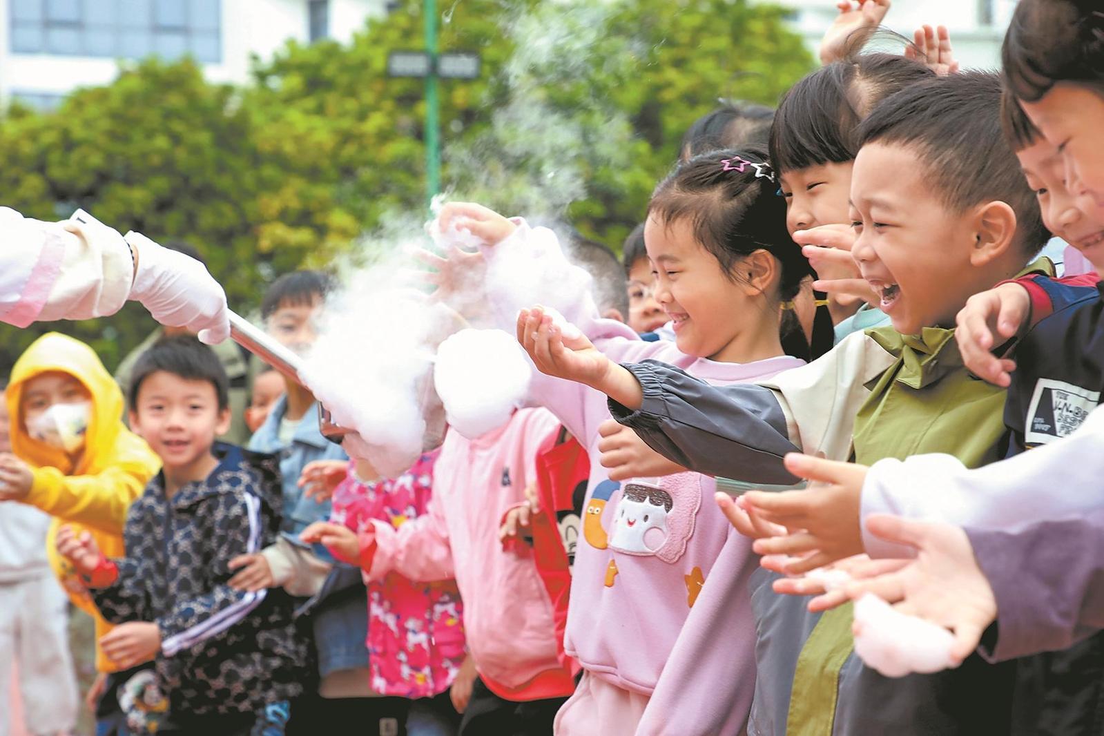 孩子们亲身体验奇妙的化学反应(学校 供图)