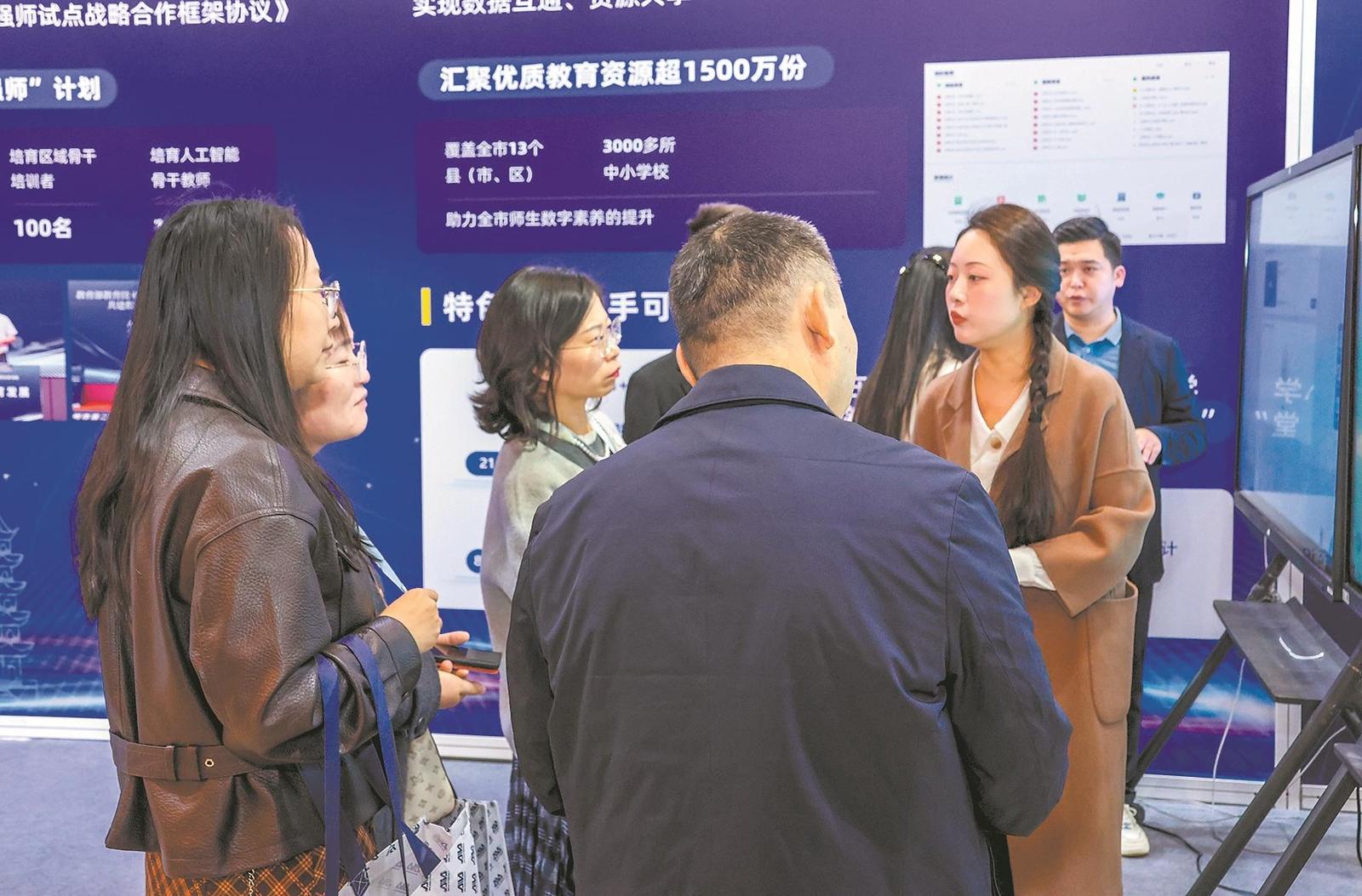 在教育数字化装备应用互动体验区,老师们体验智能设备。